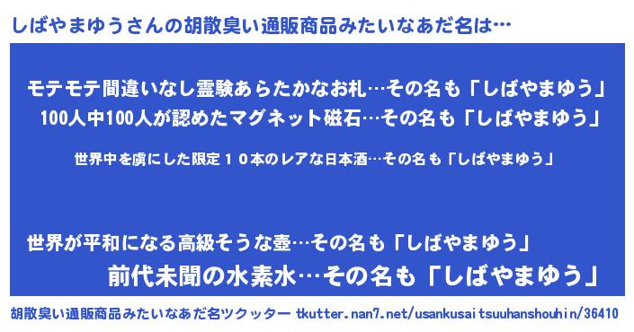 | ヘコむあだ名 | 『しばにゅー』『しばやまゆう(震え声)』 |