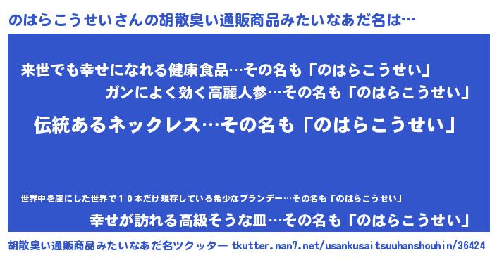 | ヘコむあだ名 | 『のは太郎』『のはらこうせい(苦笑)』 |