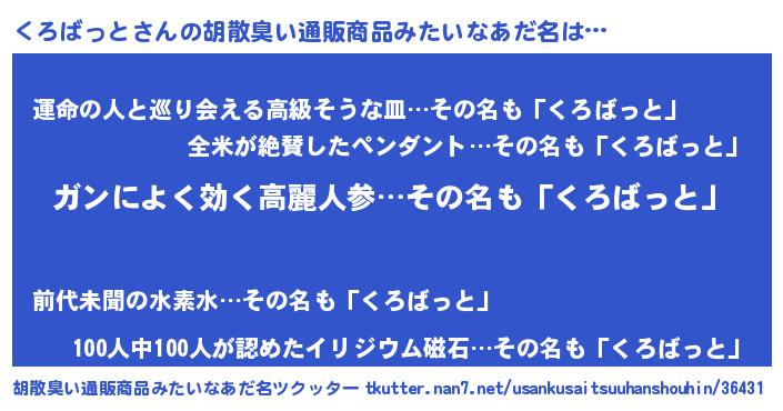| 意味不明あだ名 | 『自称くろばっと』『永久保存くろばっと』 |