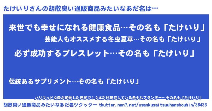 | ヘコむあだ名 | 『たけにー』『たけいり(爆)』 |