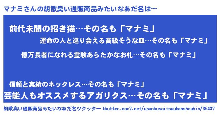 | ヘコむあだ名 | 『マナもー』『マナミ(遠い目)』 |