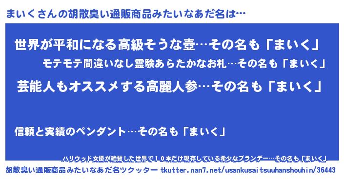 | 欧米人風あだ名 | 『ケンブリッジまいく』『マイケルまいく』 |