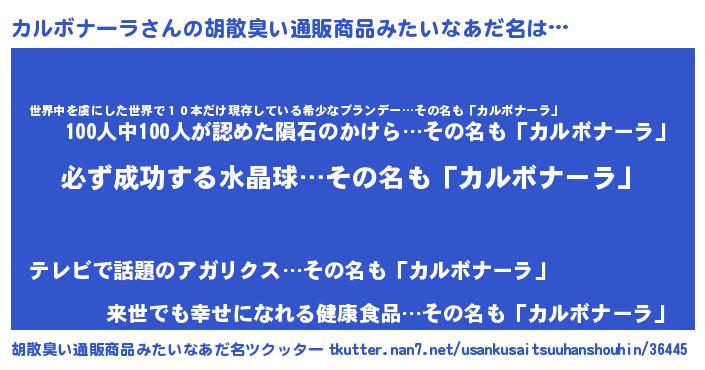 | ヘコむあだ名 | 『カルにゅー』『カルボナーラ(遠い目)』 |