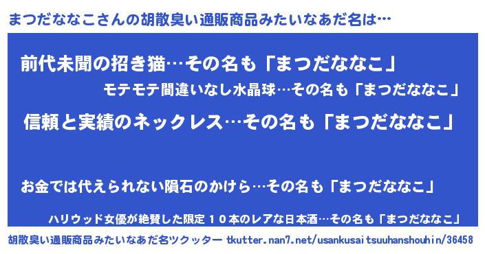 | ヘコむあだ名 | 『まつ太郎』『まつだななこ(笑)』 |