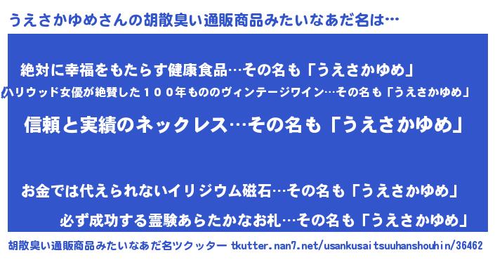 | ヘコむあだ名 | 『うえっ子』『うえさかゆめ(爆)』 |