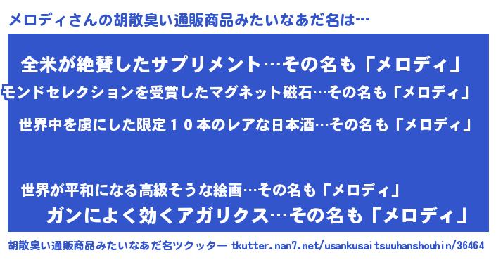 | 恥ずかしいあだ名 | 『メロリンリン』『メロディデラックス』 |