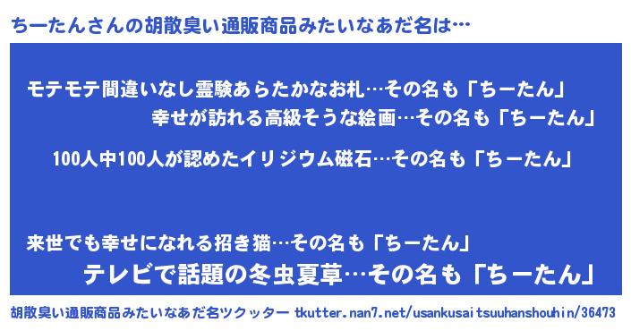 | ヒーロー風カッコイイあだ名 | 『正義の使者ちーたん』『ネオチータン』 |