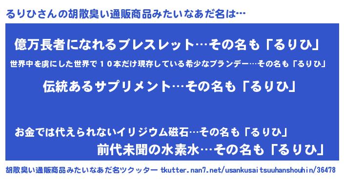 | ヘコむあだ名 | 『るりを』『るりっふぃ~』 |