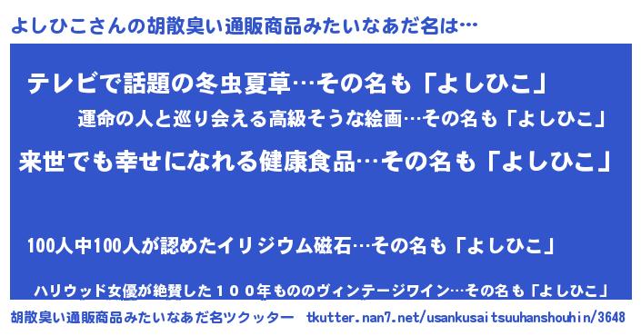| 欧米人風あだ名 | 『よしひこ・ステッグマイヤー』 |