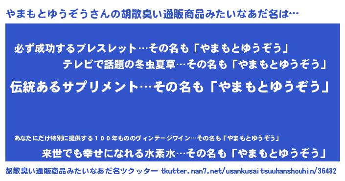 | 男性向けラノベタイトル風あだ名 | 『転生したらやまもとゆうぞうだった件』 |