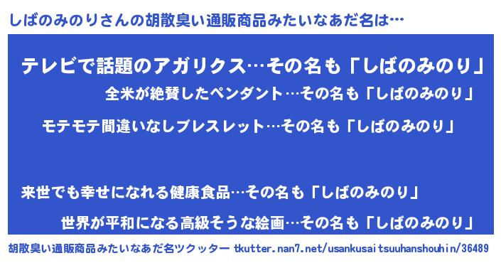 | 男性向けラノベタイトル風あだ名 | 『しばのみのりの憂鬱』 |