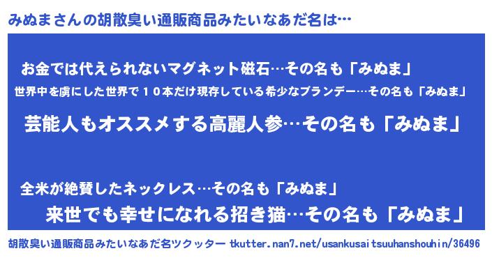 | 意味不明あだ名 | 『自称みぬま』『眠気覚ましガムみぬま味』 |