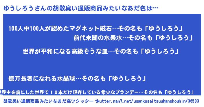 | ファンタジー風あだ名 | 『エターナルユウシロウー』 |