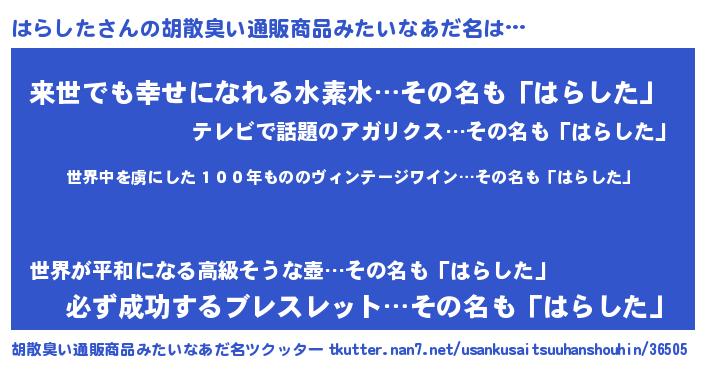 | 意味不明あだ名 | 『住所不定無職はらした(13歳)』 |