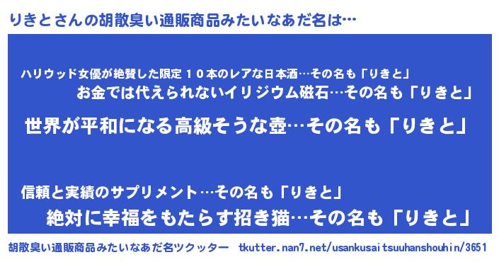 | 意味不明あだ名 | 『りきとフォーエバー』『永久保存りきと』 |