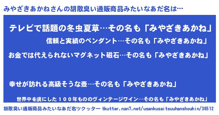 | 意味不明あだ名 | 『眠気覚ましガムみやざきあかね味』 |