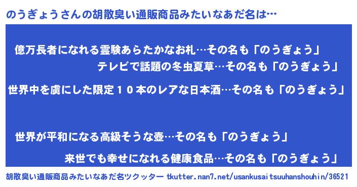 | 意味不明あだ名 | 『住所不定無職のうぎょう(41歳)』 |
