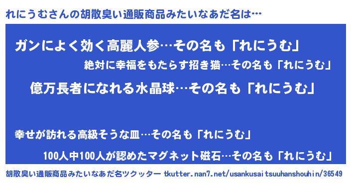 | 意味不明あだ名 | 『ペロリンれにうむ』『自称れにうむ』 |