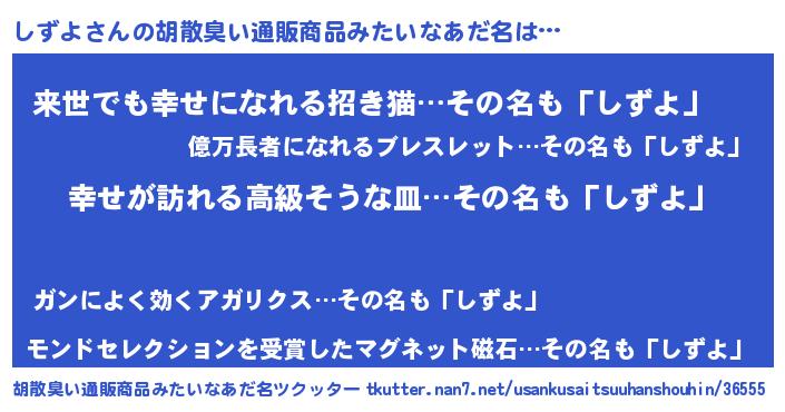 | 意味不明あだ名 | 『しずよフォーエバー』『永久保存しずよ』 |