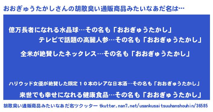 | 意味不明あだ名 | 『とにかく怪しいおおぎゅうたかし』 |