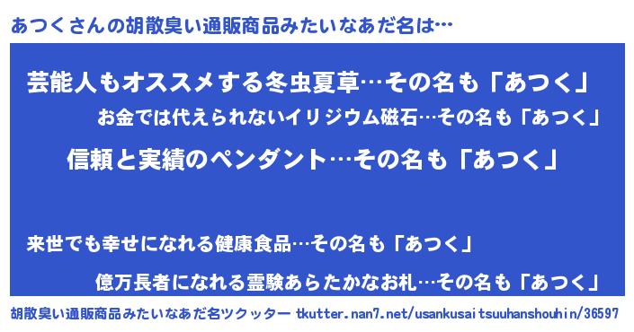 | 女子向けラノベタイトル風あだ名 | 『あつくは平凡を望む』『あつく恋絵巻』 |