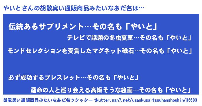 | 欧米人風あだ名 | 『ダニエルやいと』『ウサインやいと』 |