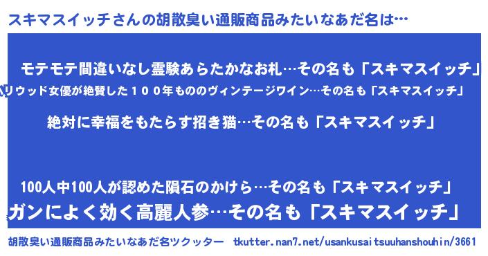 | 恥ずかしいあだ名 | 『スキちん』『プリティースキマスイッチ』 |