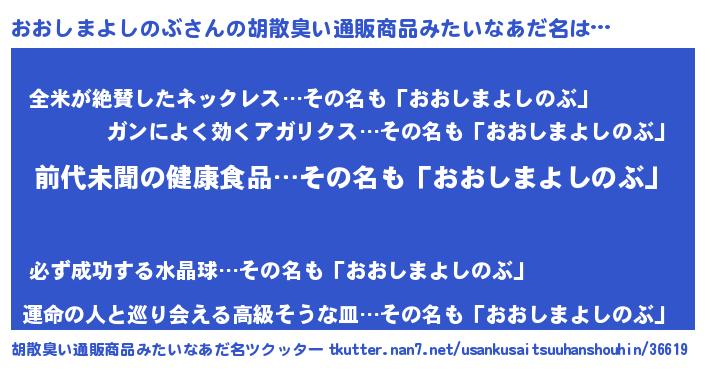 | ヘコむあだ名 | 『おおしまよしのぶ(笑)』『おおっ子』 |
