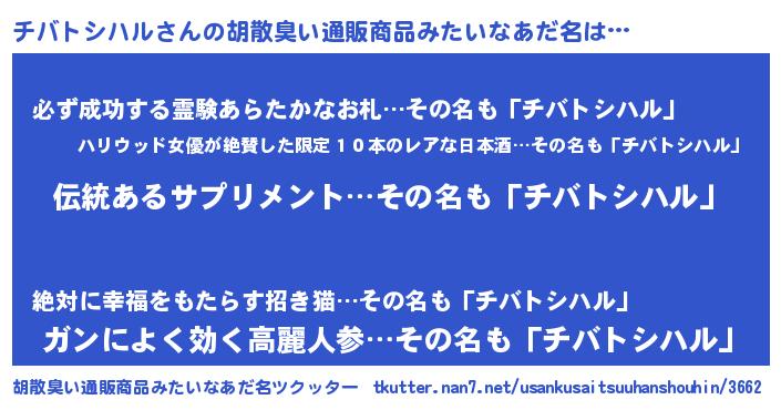 | 意味不明あだ名 | 『とにかく怪しいチバトシハル』 |