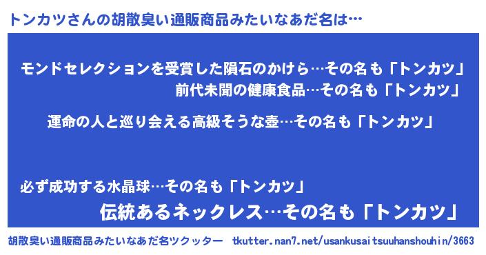 | 女子向けラノベタイトル風あだ名 | 『トンカツの婚約者』 |