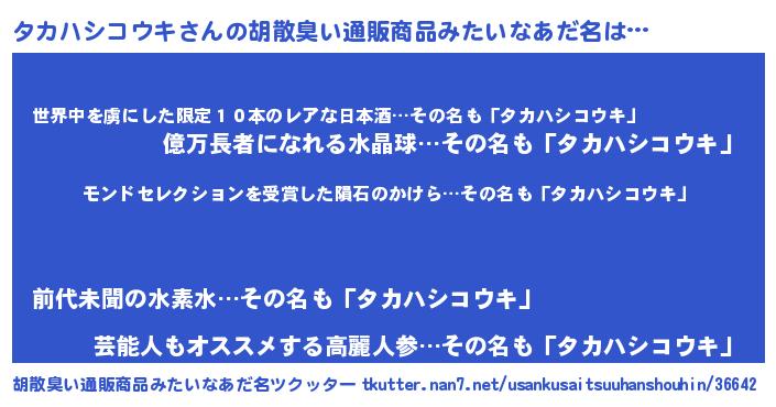 | ヘコむあだ名 | 『タカっふぃ~』『タカハシコウキ(苦笑)』 |