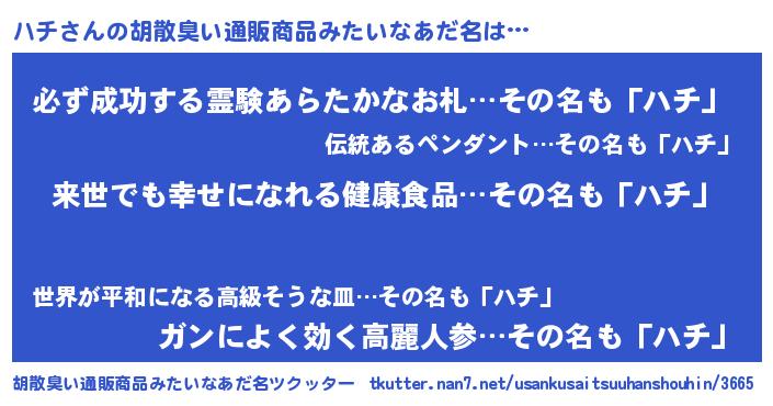 | ヘコむあだ名 | 『ハチ(笑)』『ハチっふぃ~』 |