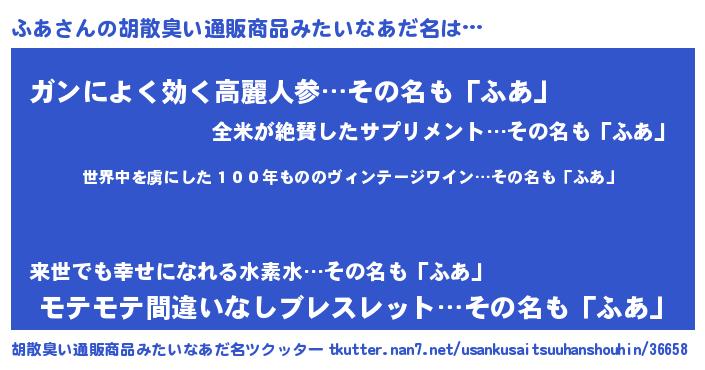 | 意味不明あだ名 | 『なめこ科ふあ属』『自称ふあ』 |