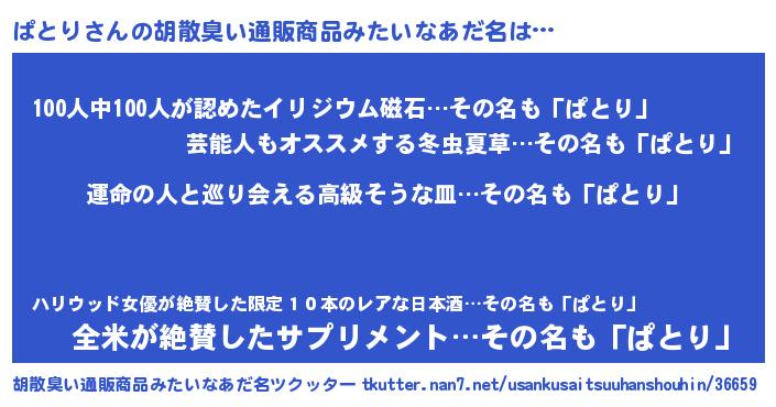 意味不明あだ名 | 『ぱとりフォーエバー』『自称ぱとり』 |