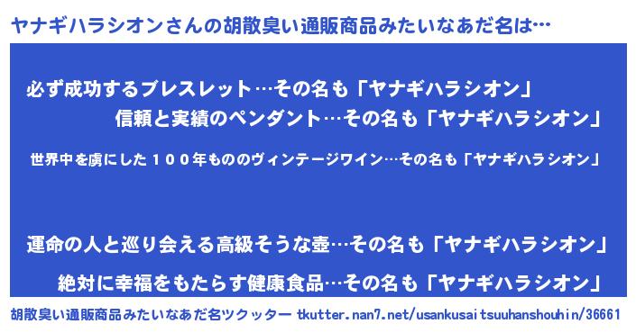 | ヘコむあだ名 | 『ヤナふぇ~』『ヤナギハラシオン(苦笑)』 |