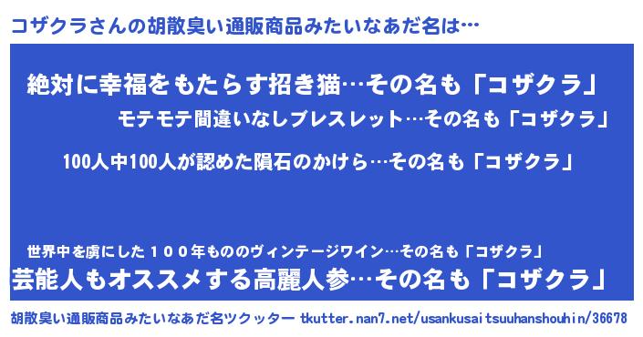 | ヘコむあだ名 | 『コザクラ(震え声)』『コザにー』 |