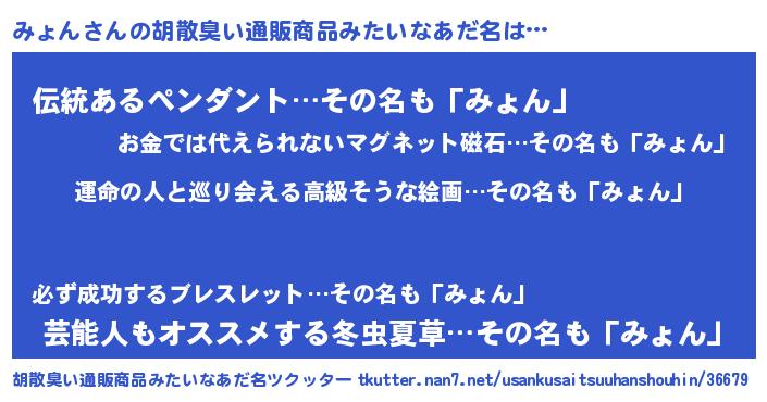 | 意味不明あだ名 | 『みょんフォーエバー』『自称みょん』 |