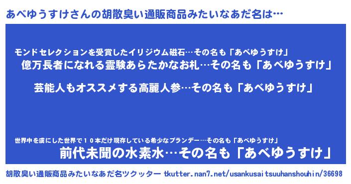 | 意味不明あだ名 | 『自称あべゆうすけ』 |