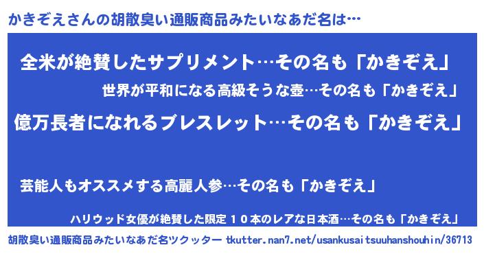 | 男性向けラノベタイトル風あだ名 | 『かきぞえに滅ぼされるだけの簡単なお仕事です』 |