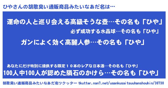 | ヒーロー風カッコイイあだ名 | 『ウルトラ戦士ヒヤ』『ウルトラひやマン』 |