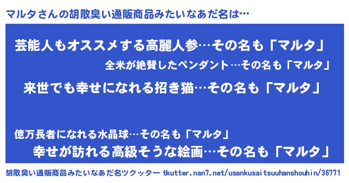| 意味不明あだ名 | 『永久保存マルタ』『自称マルタ』 |