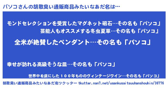 | ヒーロー風カッコイイあだ名 | 『炎刃騎士パソ』『天空の使者パソコ』 |