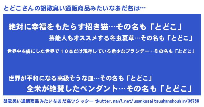 | 意味不明あだ名 | 『住所不定無職とどこ(74歳)』『自称とどこ』 |
