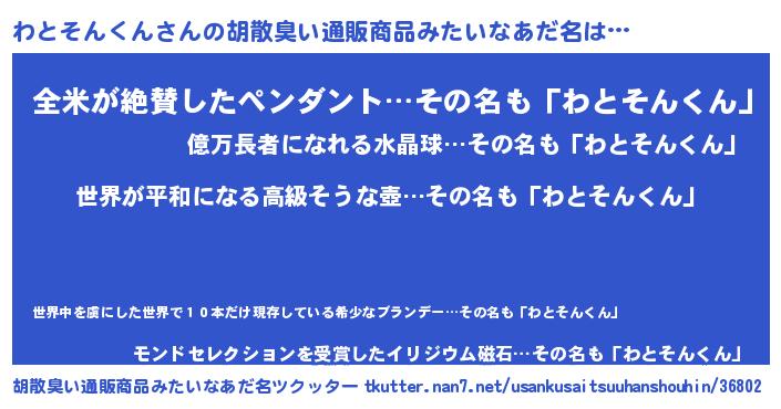 | 意味不明あだ名 | 『わとそんくんフォーエバー』 |