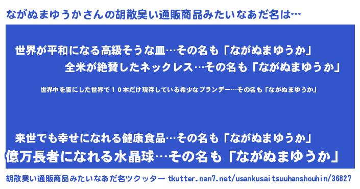 | 意味不明あだ名 | 『住所不定無職ながぬまゆうか(84歳)』 |