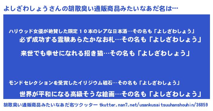 | 意味不明あだ名 | 『永久保存よしざわしょう』 |