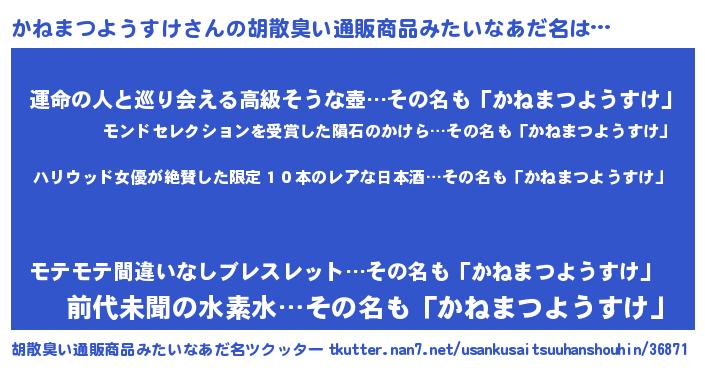 | 伝説のあだ名 | 『秘められし忍者かねまつようすけ』 |