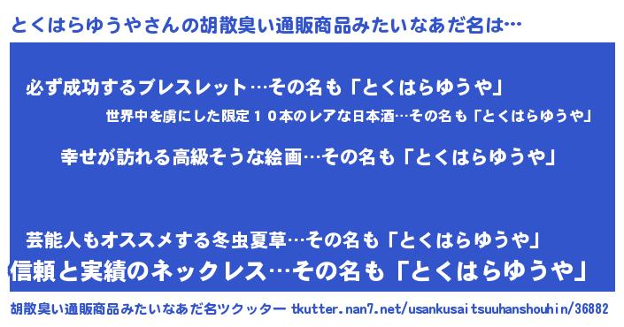 | 男性向けラノベタイトル風あだ名 | 『トクハラユウヤスレイヤー』 |
