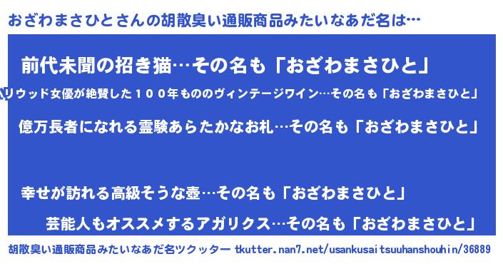 | 恥ずかしいあだ名 | 『プリティーおざわまさひと』『おざちん』 |