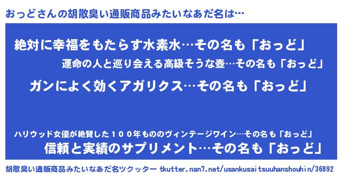 | 意味不明あだ名 | 『自称おっど』『めかぶ科おっど属』 |